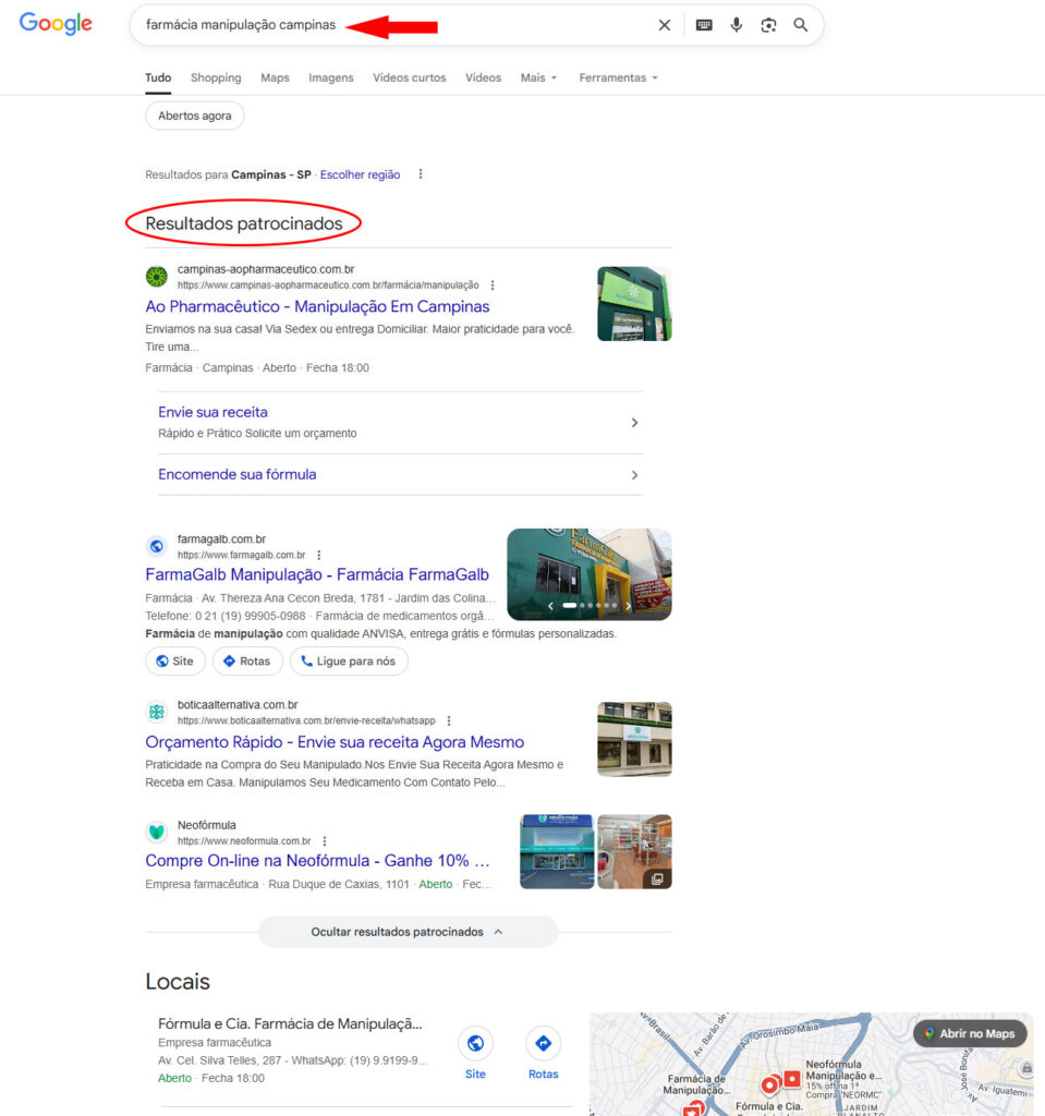 Resultado de uma pesquisa no Google por “farmácia manipulação campinas”
